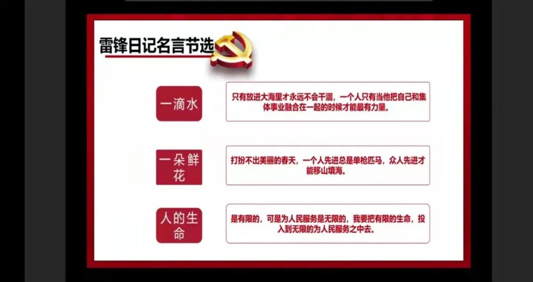 紧接着,李杨纯同学带领大家学习《雷锋日记》,从雷锋的语言中感悟雷锋精神、体会雷锋信念、传承雷锋力量。