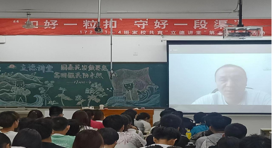 第三期教育活动的主讲人是172104班学生雷欣瑶的父亲雷丛才先生,现任新疆维吾尔自治区伊犁州察布查尔县米粮泉乡党委委员、武装部部长。雷先生和大家一起分享了自己在抗洪抢险和疫情防控工作中的感人事迹。2021年5月至10月,伊犁河水位暴涨,米粮泉乡克米其村地处伊犁河沿岸,软坝突发险情急需加固,雷先生时任总指挥负责调运物资,与其他乡干部夜以继日坚守在防洪坝上长达半年之久,面对家人的埋怨和不理解,他只是简单的说了一句:“我的工作就是防洪,我的家就是乡政府”。新冠肺炎疫情袭来,雷先生在全封闭期间主要负责全乡的后勤物资保障和日常消杀工作,他坚持亲自干、带头干,纵然一线工作危险重重,他始终牢记党员身份,遇到困难冲上去、挺在前。雷先生还分享了自己感悟最深的一句话:每个人都要有自己的理想和信仰。理想从学习开始,事业靠本领成就。站在“两个一百年”奋斗目标的历史交汇点,雷先生号召广大青年要勤于学习,敏于思考,胸怀报国之志,为祖国奉献、为人民服务,彰显新时代中国青年的精神风貌。