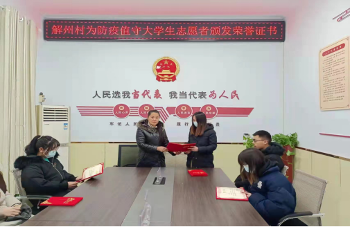 在山西省晋城市陵川县马圪当乡横水村进行疫情防控信息登记工作的张潇宇同学(92001班)说到:“通过参加这些活动让我感受到国家对人民健康的重视和人们的配合自觉,在这个活动中,我有一种能为社会贡献的满足感,身为一个大学生,为自己家乡奉献自己的一份力是我们的责任。”