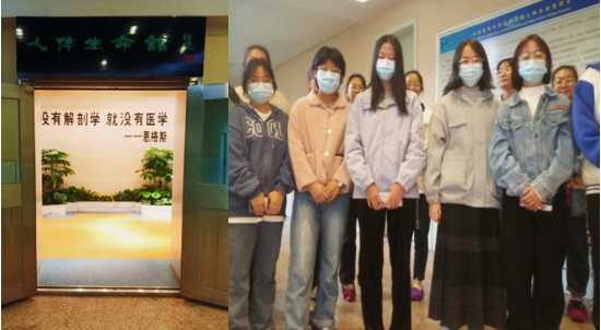 进入馆内,“没有解剖学,就没有医学。——恩格斯”这句话语指明解剖学的奠基意义。在讲解员的带领下,同学们在此一同探索生命的奥秘。首先,同学们来到一号展区,在观看致敬无言良师的短片前,讲解员和同学们一同默哀30秒,致敬这些为医学事业奉献的人。他们缄默无言,却是无可替代的恩师。无言良师授吾医理,敬若先贤临如活体。他们生命的长度虽然终止,却在生命的最后时刻开拓了生命的宽度。在胚胎学展区,展示着一个人从胚胎开始每周的变化,直至最后演变为婴儿的整个奇妙过程,让人不由产生对生命的敬畏。