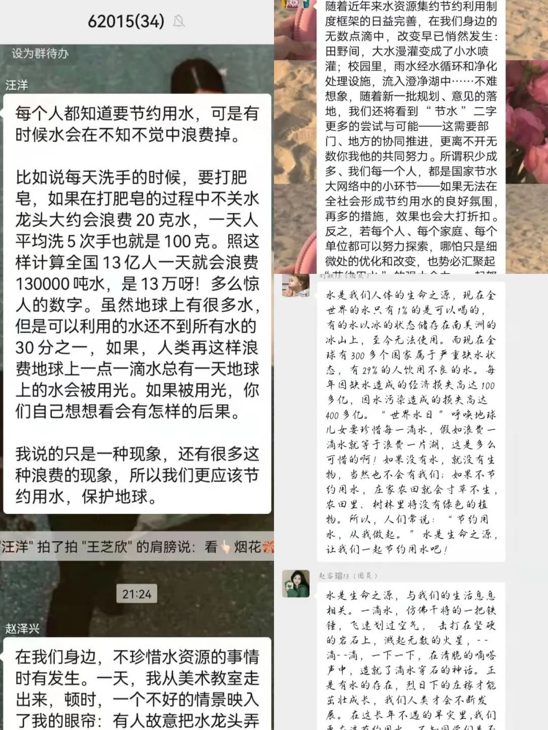 为进一步营造全校惜水,爱水的浓厚氛围,深入实施习近平总书记提出的水资源保护和治理相关举措,践行生态绿色发展理念,激发大家参与节水活动的热情,让节约用水的理念真正走进同学们心中。3月23日晚9点,护理学系62011-20班在钉钉平台上开展了“坚持节水优先,共护绿水蓝天”主题班会。此次班会由16班团支部书记岳佳怡主持,辅导员赵艳老师及全体同学参加。