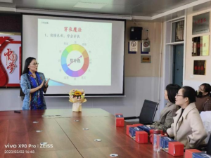 特邀嘉宾郭老师采取理论讲解和现场示范相结合的方式,围绕色彩及各种身型服饰的搭配原则,用诙谐幽默的语言讲述了不同的穿衣方法和服饰搭配技巧。郭老师表示:“衣着得体的宗旨是要体现出着装打扮里的智慧和时尚素养”,老师们纷纷点头表示赞同。