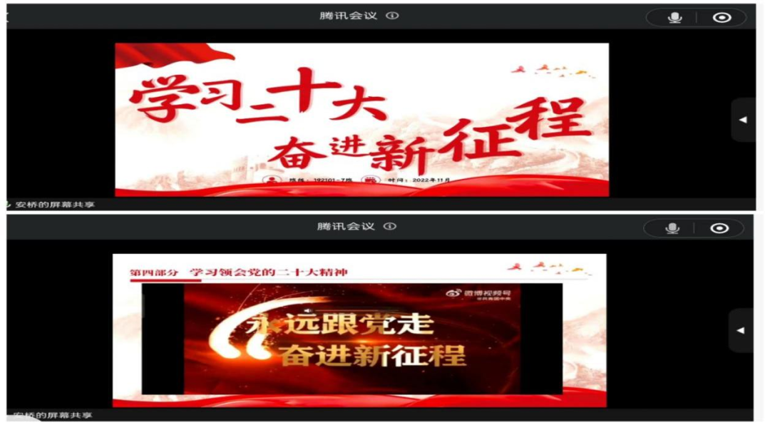 2022年10月16日上午10时,中国共产党第二十次全国代表大会在北京人民大会堂开幕。为深入学习贯彻党的二十大精神,把智慧和力量凝聚到完成党的二十大确定的各项任务上来,更好团结引领广大青年紧跟党奋进新征程、夺取新胜利,护理学系助产学专业192101-7班于2022年11月11日晚上8点召开线上学习党的二十大主题活动。本次会议由辅导员尹国荣老师组织,主讲人是192101-7班团总支书记闫宇萱,192101-7班全体同学参与。