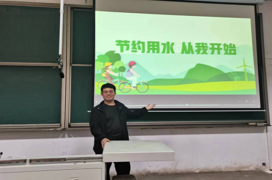 “节约用水,从我做起”随着这声洪亮的口号响起,本次节水宣传主题班会正式开始!班会课上,大班班长赵云同学通过PPT展示、视频播放、现场讲解等多种方式为同学们进行了宣传教育。