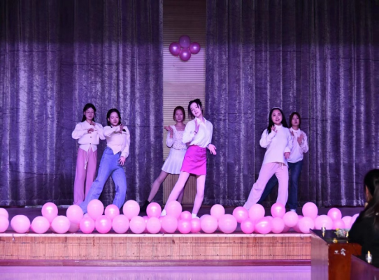 在集体的合唱声和闪光灯挥动的浪潮中,四名主持人缓缓走上舞台宣布活动开始。首先由王泽京、牛颖童等同学结合护理学专业特色,利用现代小说元素,自编自创演绎的小品《霸道总裁爱上我》,以剧组拍摄的角度、趣味性的手法展示了护士工作生涯中遇到的趣闻趣事,活动氛围逐渐拉开。班级女生的舞蹈节目《恋爱告急》,赢得了一大片掌声与欢呼,舞台上的女孩光彩夺目,自信从容,做自己舞台的主角。