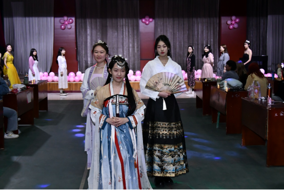 在大家兴致正浓时,张若涵宿舍带来的小品《唐朝美人》缓缓登上舞台,从当代女性的容貌焦虑入手,以古代场景为辅,诙谐幽默,旨在揭示每个人都有自己魅力,可以是朝阳的向日葵,也可以是暗夜的玫瑰,大众的偏见无法还原真正的你,狭隘的定义无法决定怎样的你。活动的压轴表演为“豆蔻青春,衣华独秀”大型走秀节目,共80多人参与,有礼服组、运动组、古风组、休闲组、西服组等,风格迥异。我们生活在张扬个性的年代,舞台中央灯光闪耀,映照着同学们明媚的洋溢着笑容的脸庞,朝气盎然,律动中充溢着自信,展现了青春风姿。每个小组之间的默契配合,提升了班集体的团结意识,展现了同学们自信热血的精神风貌。