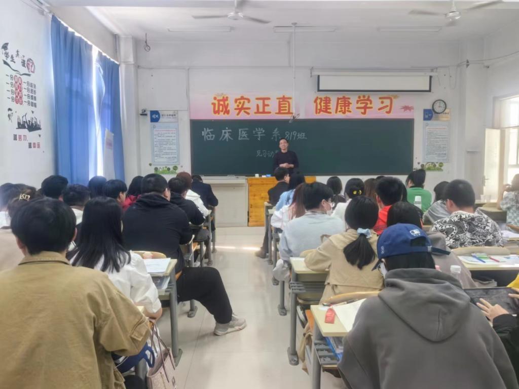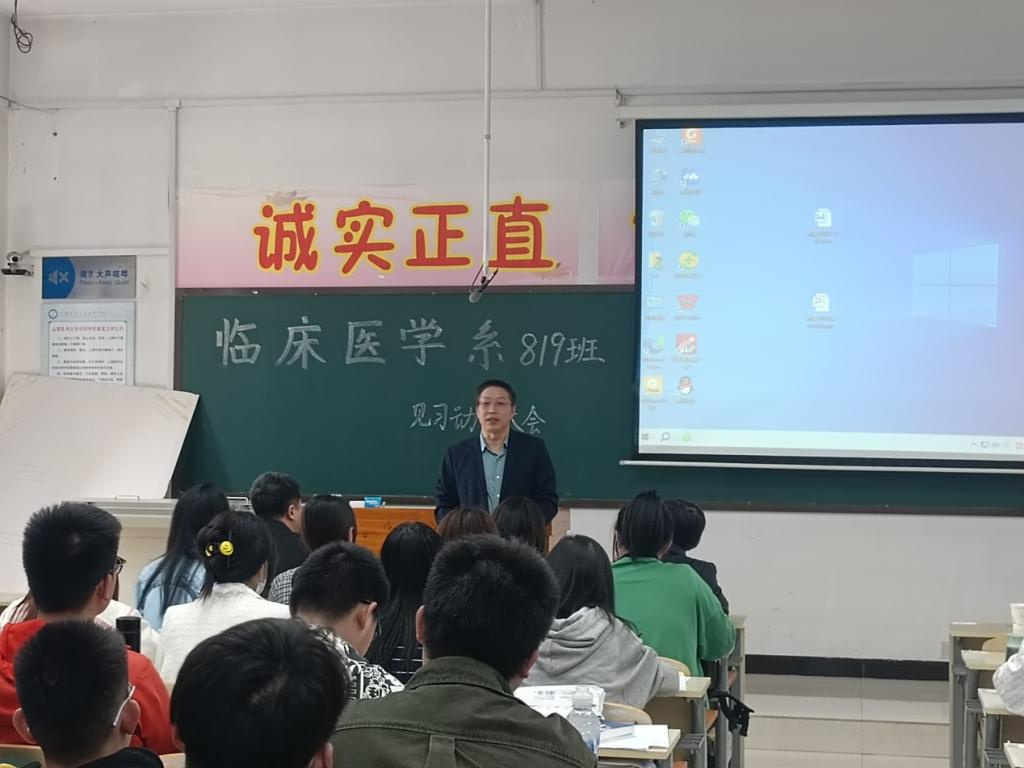为进一步推进2023年度临床见习工作,引导学生做好见习前的心理准备,临床医学系分别于2023年2月22日和3月30日对2019级临床医学专业和医学影像学专业学生进行了见习动员大会。出席本次大会的有:临床医学系主任杨兴益、教务处副处长王艳峰、临床医学系党总支副书记郭晋、系分管见实习工作副主任高瑞忠、系教学秘书高秀林,会议特别邀请了山西省汾阳医院医学教育科陈亮和王秋红副主任,519班学业导师程钰、819班辅导员老师王莉梅、819班学业导师王延茹及519和819班全体学生参加了动员大会。