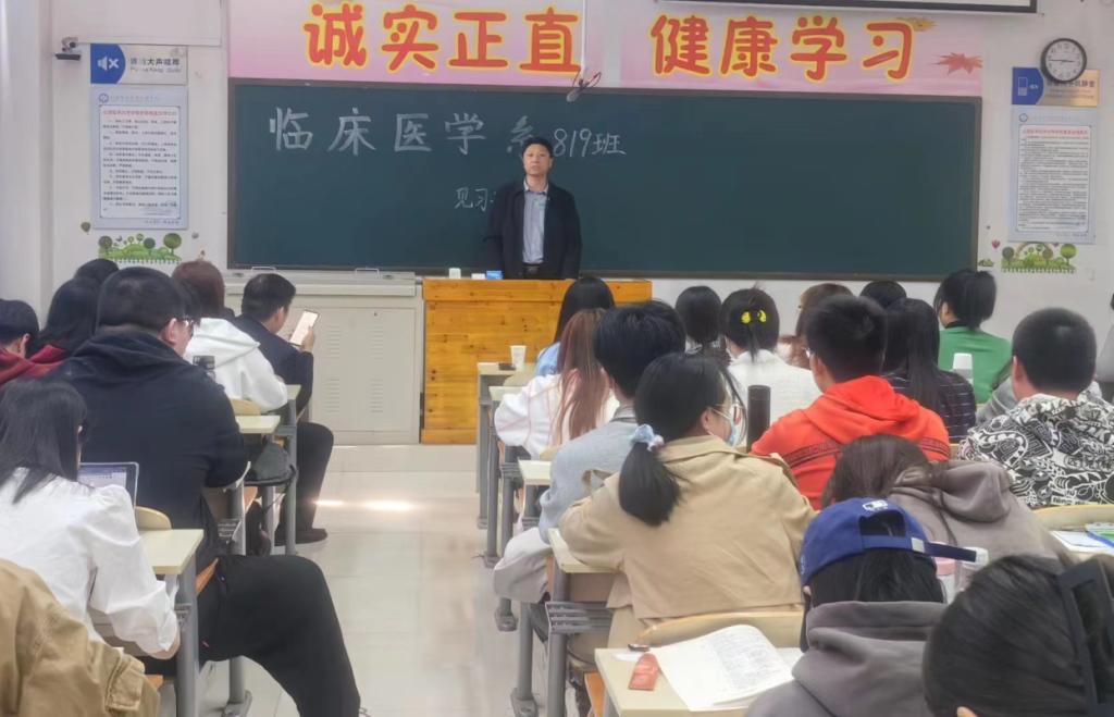 随后王艳锋副处长就学生安全问题做了强调,要求同学们应有规矩意识、风险意识、求助意识及团队意识,强调同学们在见习中思想上重视、行动上落实,希望同学们正确认识目前就业形势,切实转变观念并端正见习态度。见习中时刻注意个人形象,为学院和医院争光,同时建议医院加强学生管理。