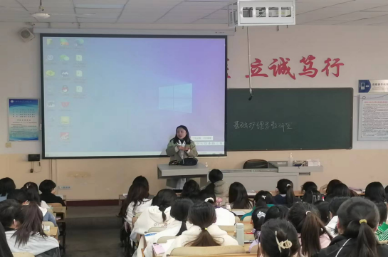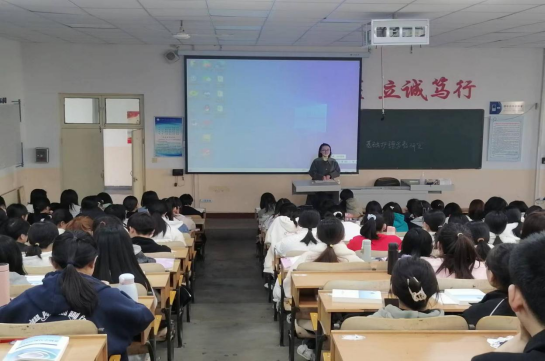 郭艳老师首先分析了上学期同学们的成绩,指出学习中存在的问题,并且对新学期全体同学的学习和生活提出中肯的建议。紧接着,郭艳老师带领同学们了解当下就业局势,建议有考研想法的同学,结合自身学习实际情况,考过英语四六级,为考研做好充分的准备工作。同时,她主张“先就业再择业”,讲述部分考研同学的真实经历,让全体同学对考研有了更深入的了解,她认为考研是不错的选择,但一定程度上也会使同学们在等待考研的过程中错失就业良机,所以要求我们明确自身目标,把握就业机会。此外,郭艳老师希望同学们认真学习专业知识,制定科学的学习计划,抓住学习主流,积极参加社会实践活动,德智体美劳全面发展。