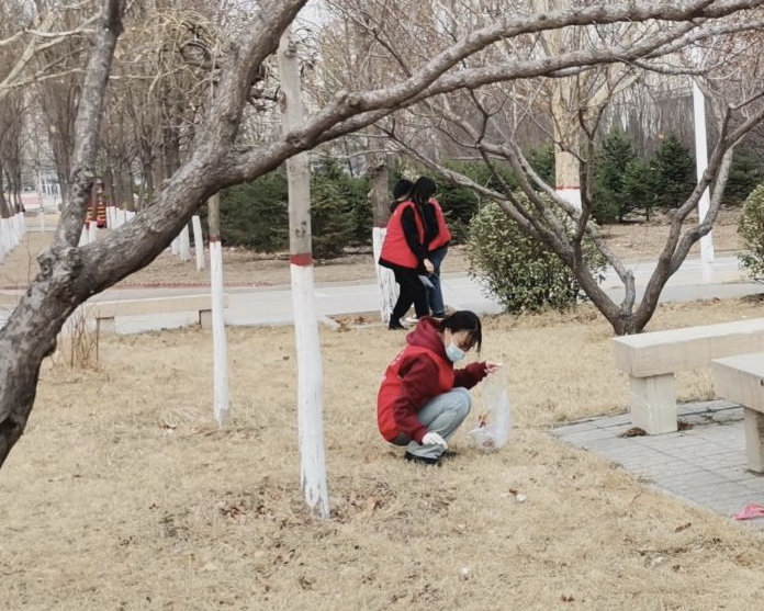 “我愿意成为一名光荣的志愿者。我承诺:尽己所能,不计报酬,帮助他人,服务社会……。”在庄严的宣誓声中,本次志愿服务活动拉开了帷幕,志愿者们手持扫帚、簸箕、垃圾袋、小铲子等工具,开始进行捡拾垃圾,清扫校园等劳动实践活动。在大家的共同努力下,平常不引人注意的垃圾都捡了出来,花园绿地环境也焕然一新。同学们把捡到的垃圾分类放到了垃圾桶里,为建设绿色家园作贡献。
