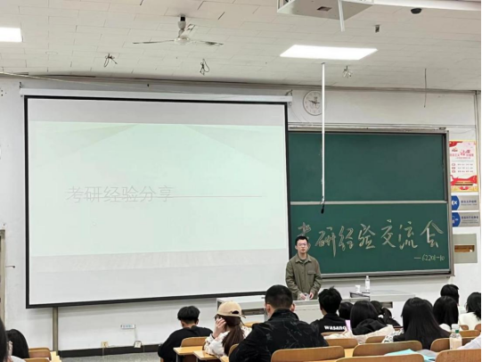 交流会上,刘凯瑞以PPT的形式,结合自身考研经验,给我们带来了五个方面的经验分享:备考时间线、如何择校、复试经验、寻求考研资料、备考心态。他分享的主要内容为学习方法,他根据自身经验与心得告诉同学们及时复盘与理解记忆的重要性,在考研心态方面,他希望学弟学妹们可以做到眼中有光,心中有梦,将压力转化为动力,做到“慎独”,奋力啃下考研这个“硬骨头”,做好打持久攻坚战的准备。对于同学们备考过程中将要遇到的问题,刘凯瑞也结合自身经验为现场同学解答疑惑,让同学们对考研有了更深刻,更清楚的了解。