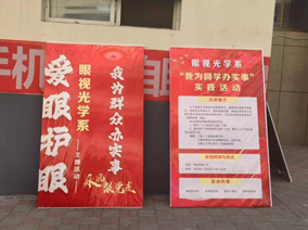 为深入学习贯彻习近平总书记关于儿童青少年近视防控工作系列重要指示批示精神,持续开展好“我为群众办实事”实践活动,眼视光学系结合专业特色,成立近视防控宣讲团,以广大师生为服务对象,以“我为同学办实事”为主题,从2023年9月起,共举办了四次“爱眼护眼”志愿服务活动。