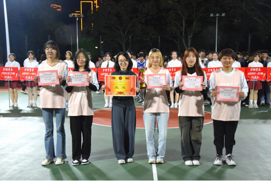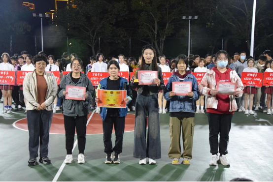 激扬青春,圆梦赛场。一场场紧张激烈、扣人心弦的角逐,不断在篮球场内上演,球员们用汗水诠释着青春的热血与活力!在这紧张激烈的氛围中,护理学系2023年“天使之星”篮球赛圆满落下帷幕。10月9日晚,闭幕式于篮球场举行,护理学系党总支副书记申涛、护理学系团委书记康智芳及护理学系各班辅导员老师王娟、张晓丽、尹国荣、陈美妍、沙云玉参加本次闭幕式。