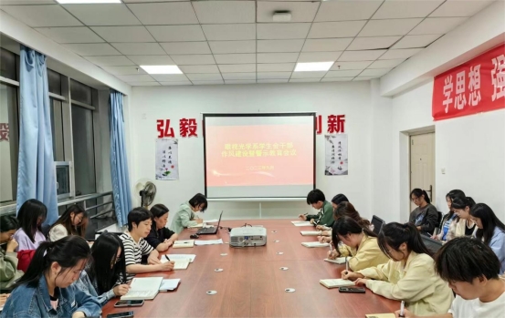 为进一步引导青年学生干部树立正确的价值观、权力观,营造清廉学校建设浓厚氛围,推动学校全面从严治党向纵深发展,9月22日晚7:30,眼视光学系党总支在系会议室召开了眼视光学系学生会干部作风建设暨警示教育会议。系党总支书记岳永红、副书记张华、分团委书记阎艳萍及系学生会全体成员参加了会议。