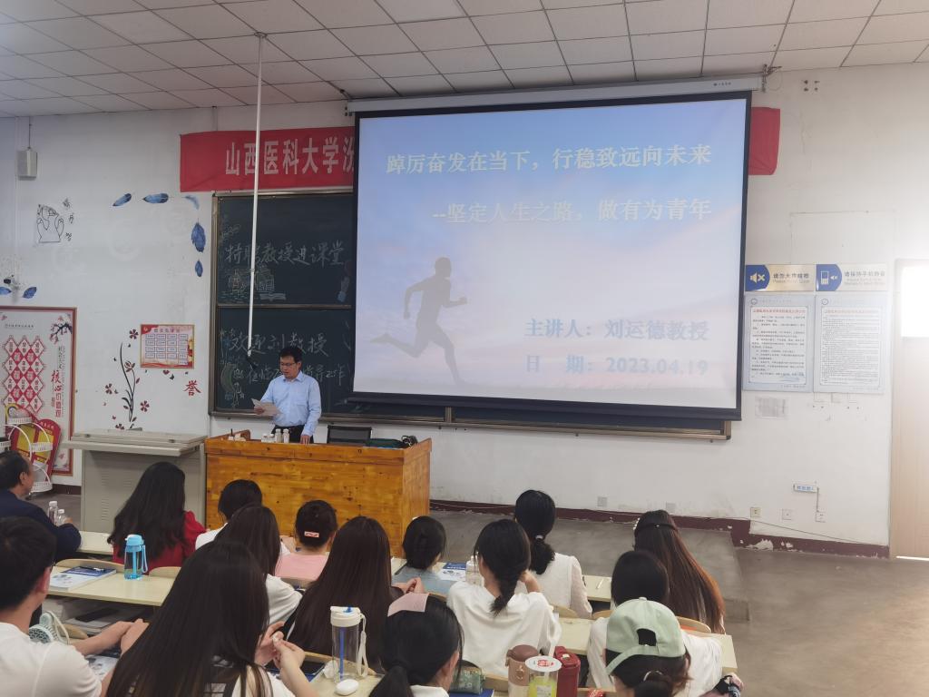 4月19日下午3时,世界杯官网特聘教授、原天津医科大学临床技能中心主任、医学检验学院院长、博士生导师刘运德教授莅临医学检验系72101-8班,作了题为《踔厉奋发在当下 行稳致远向未来》的人生规划专题讲座,医学检验系党总支书记李元宏、系主任张晓延、辅导员王倩倩、学业导师赵秀敏以及72101-8班全体学生现场聆听讲座。