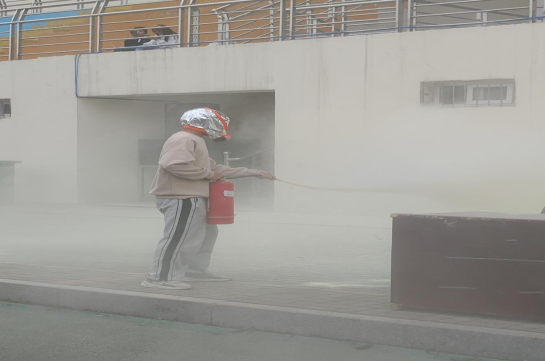 本次安全教育主要分三个部分:一是灭火器的使用;二是自救呼吸器的使用;三是灭火毯的使用。