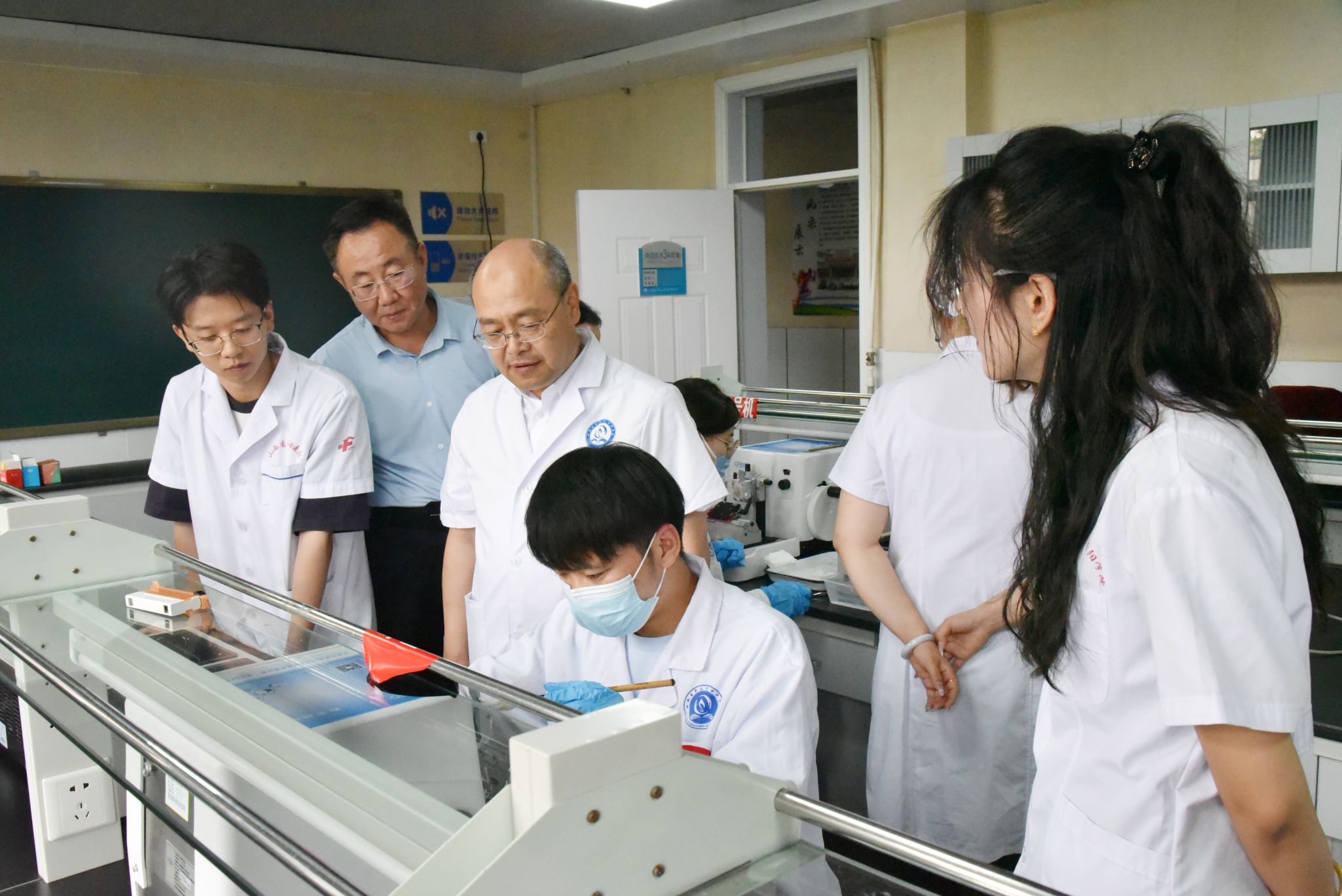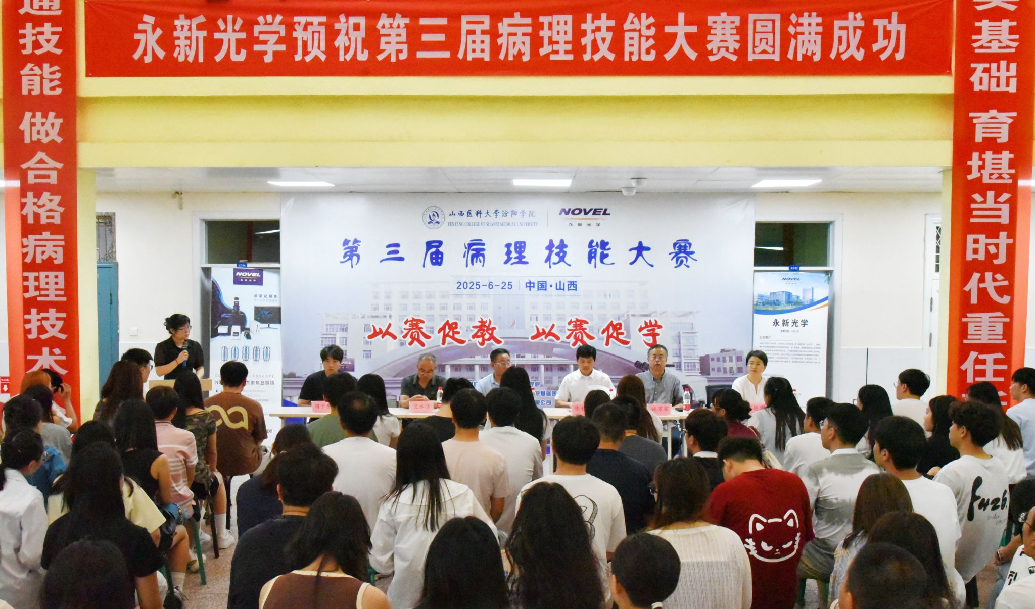 本次大赛由基础医学部承办。评委由山西省汾阳医院病理科资深医师与世界杯官网基础医学部病理教研室骨干教师共同组成。校党委委员、副院长陈振文,教务处处长陈利荣,基础医学部党总支书记姚万军、主任乔海兵、党总支副书记宋艳萍、副主任兰冰洁,以及山西省汾阳医院病理科、基础医学部病理教研室、形态I实验室全体教师莅临现场,医学实验技术专业学生到场观摩学习。形态I实验室主任徐义荣主持开幕式。