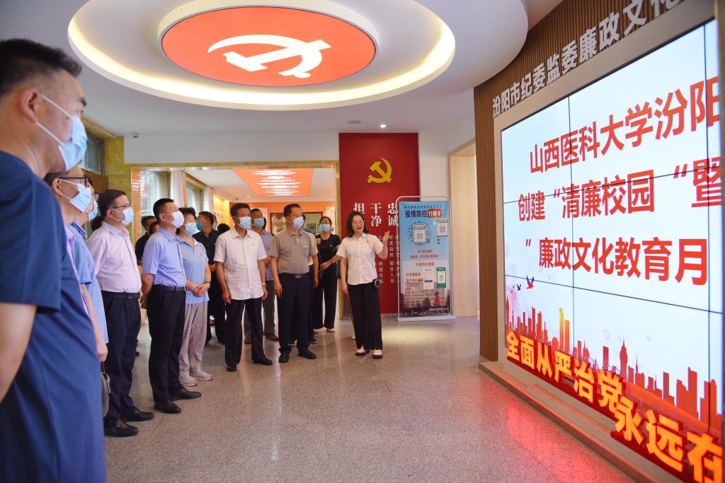 为全面落实省第十二次党代会提出的全面推进清廉山西建设的决策部署和省委教育工委、省教育厅关于全面建设清廉学校的要求,根据学校党委关于清廉学校创建和第八届“廉政文化教育月”的活动安排,6月22日下午,党委书记闫敬来,党委副书记、院长孟小平,党委副书记任云青,党委委员、纪委书记任朝生,党委委员、副院长韩宝森、陈振文及中层正职和主持工作的副职干部赴汾阳市纪委监委参观学习了廉政文化长廊。